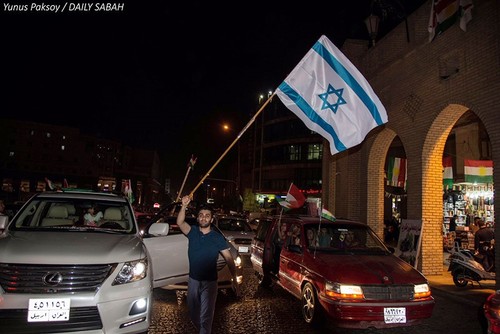Thousands of Kurdish people in favor of Kurdistan Regional Government (KRG)'s independence referendum have taken to the streets in Irbil, including some waving Israeli flags to celebrate, even though results of the disputed referendum have not been announced yet.