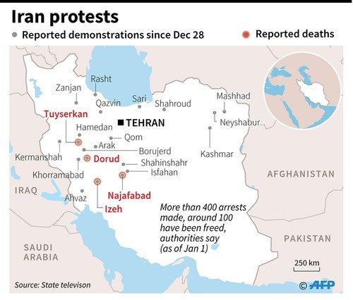 The demonstrations, the largest to strike Iran since its disputed 2009 presidential election, have seen six days of unrest across the country and a death toll of at least 20.