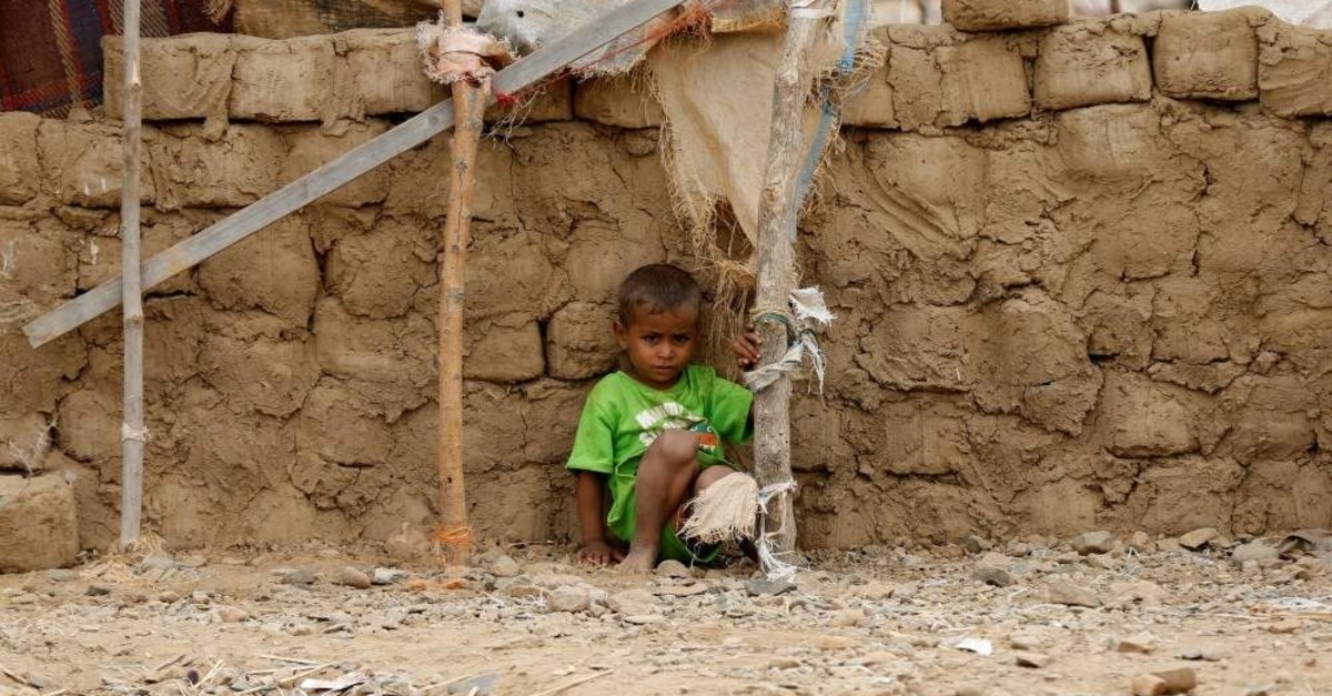 A boy sits near a hut in an improvised camp for internally displaced people near Abs of the northwestern province of Hajja, Feb. 18, 2019. (REUTERS Photo)