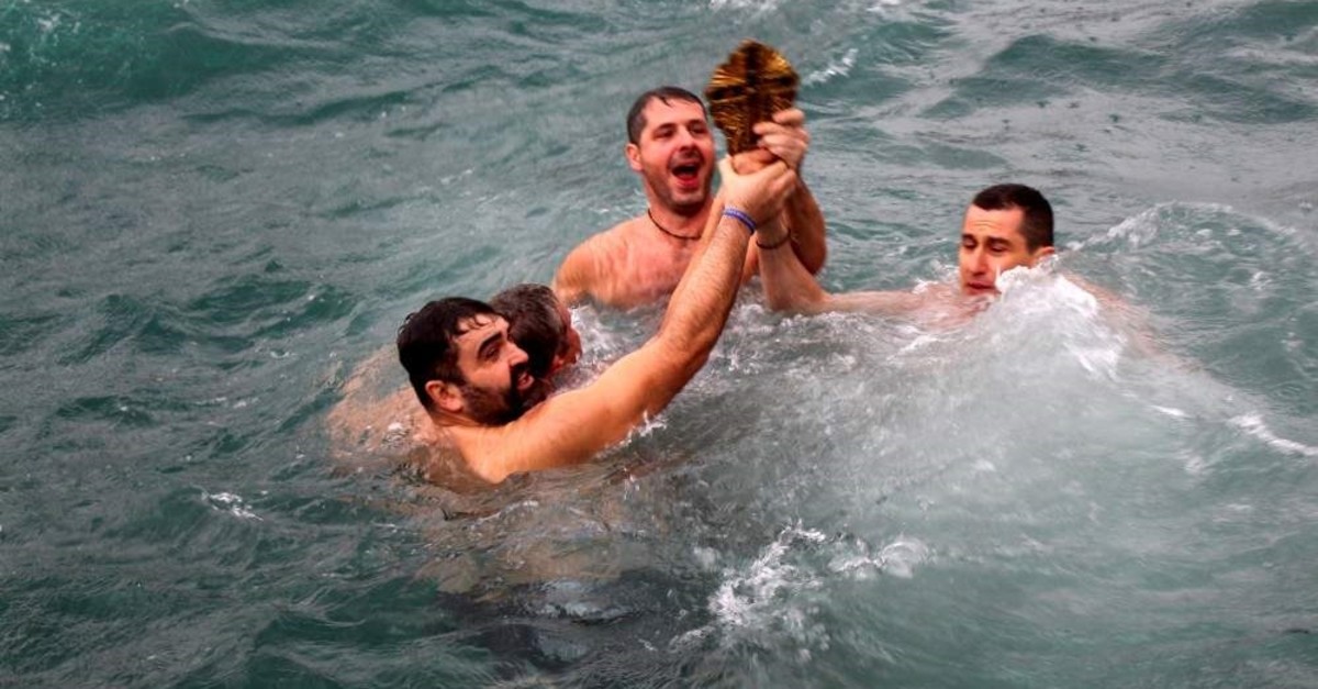 Members of the Greek Orthodox community marked the birth and baptism of Jesus Christ Monday with Epiphany, which is marked with a ritual of retrieving a cross from the water. Braving cold weather as storms and heavy winds battered Istanbul, swimmers jumped into freezing waters to retrieve crosses.