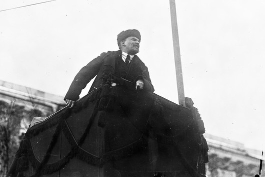 Soviet leader Vladimir Lenin addressing a crowd during the first year of the revolution in Red Square, Moscow, Nov. 7, 1918. (AP Photo)
