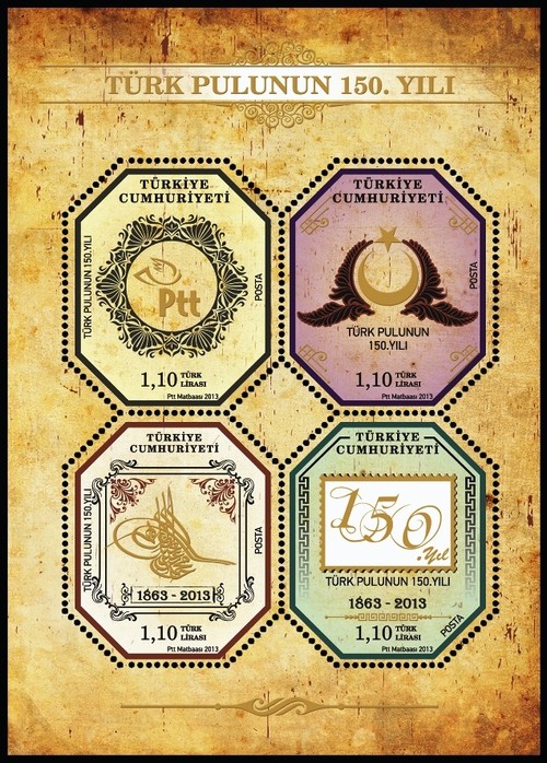 A Turkish postal stamp published for the 150th anniversary of the Turkish Post.