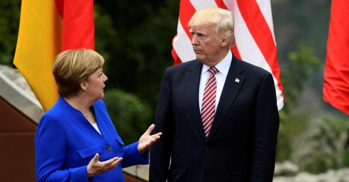 German Chancellor Angela Merkel (L) and U.S. President Donald Trump talks during the G7 summit in Taormina, Sicily, May 26, 2017. (AFP Photo)