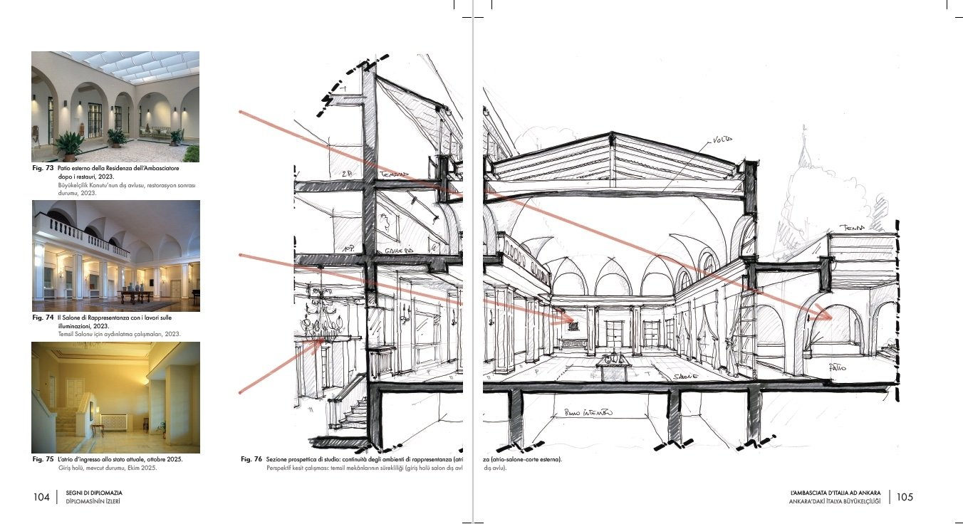 The book “Segni di Diplomazia. Gli edifici della Rappresentanza Italiana in Turchia" ("Signs of Diplomacy. The Italian Embassy in Türkiye") grew out of a simple yet ambitious idea: to consider Italian architectural heritage not merely as a collection of buildings, but as a living archive of the long-standing relationships between Italy and Türkiye. This perspective was shared from the beginning, some years ago, by me, as an academic expert in the history of architecture, and my co-editor, Mario Magnarelli, an architect and restorer who was also professionally involved in the restoration of some of the buildings presented in the book, bringing direct, hands-on experience into the project.