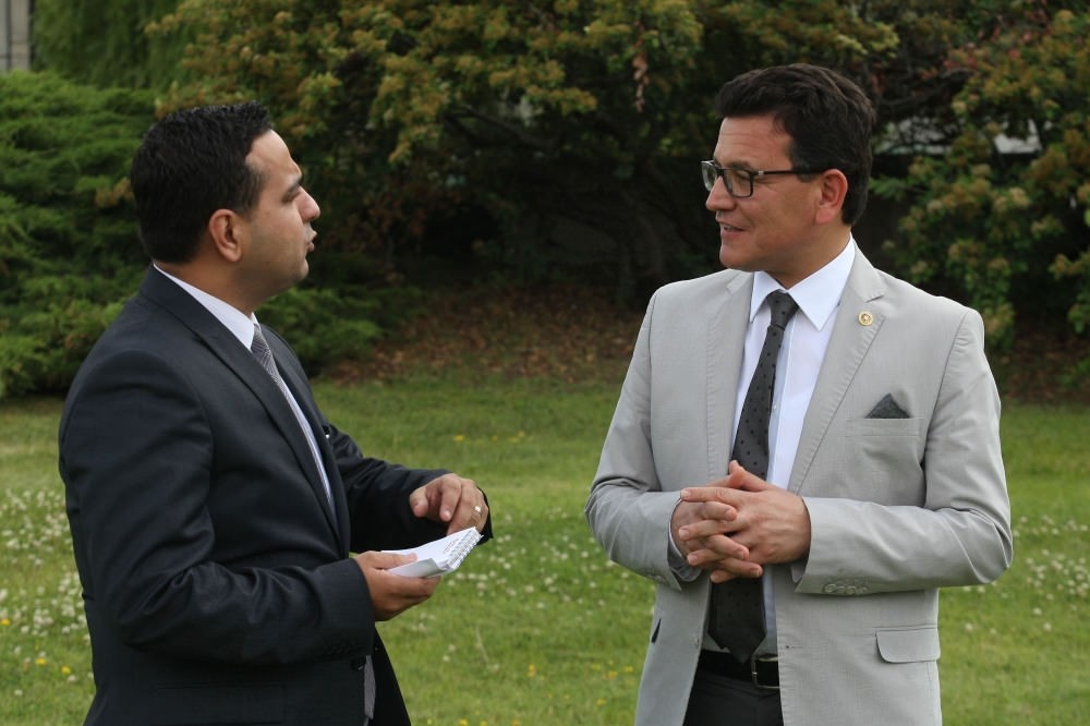 The head of Parliament's Refugee Rights Committee, Atay Uslu (R) and Daily Sabah's Ali Ünal