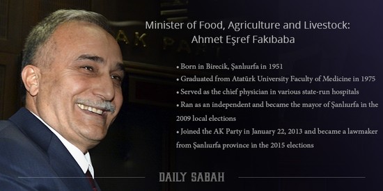 Minister of Food, Agriculture & Livestock: Ahmet Eşref Fakıbaba (replacing Faruk Çelik)