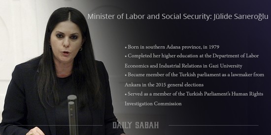 New Minister of Labor and Social Security Jülide Sarıeroğlu became the second female politician in cabinet after Family and Social Security Minister Fatma Betül Sayan Kaya, who kept her post during the reshuffle. She is also the first woman to hold the labor ministry post for the first in 26 years.
