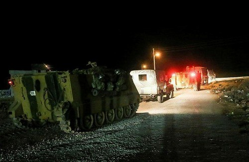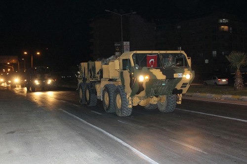 The convoy included about 30 military vehicles, said Abu Khairo, a commander in the Free Syrian Army (FSA) based in the area, and it entered Syria near the Bab al-Hawa border crossing, according to a civilian witness.