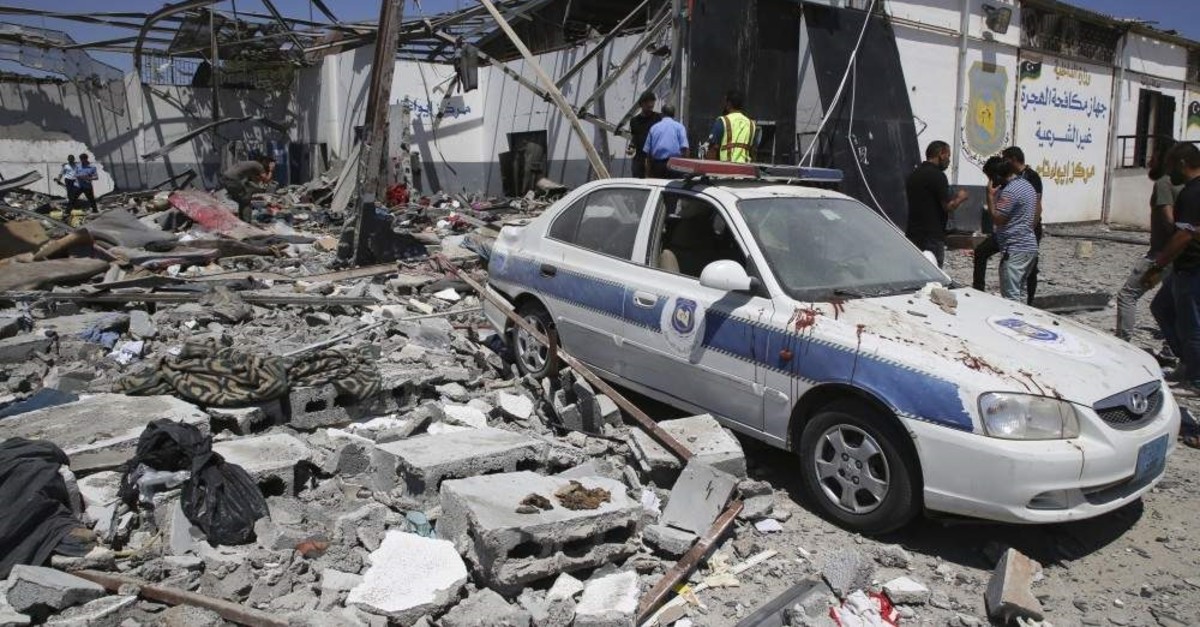 A hangar used to detain migrants took a direct hit in the nighttime strikes along with a workshop operated by an armed group.