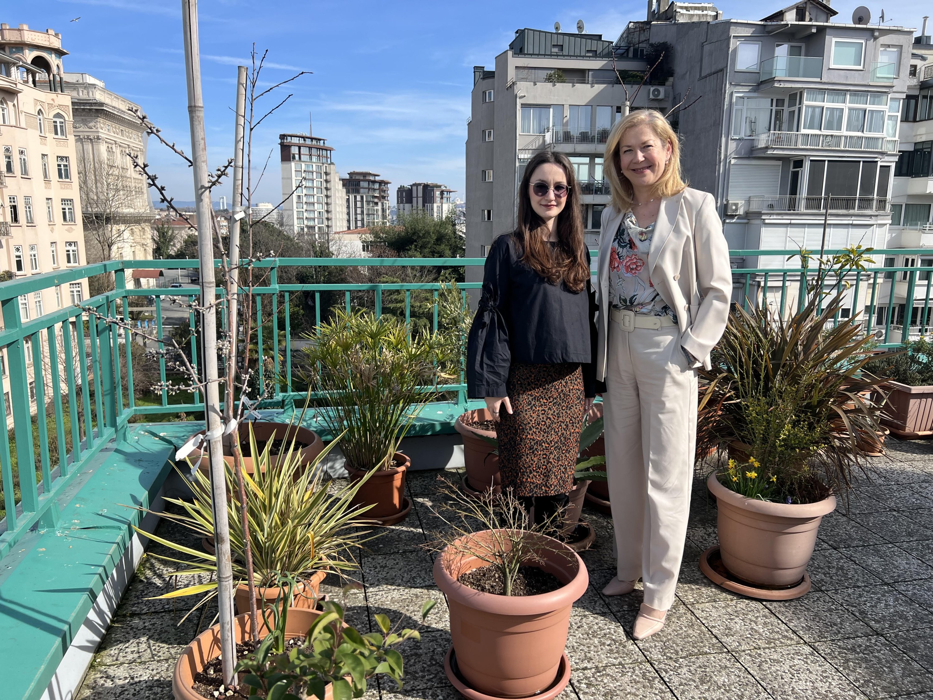 While giving a tour of the terrace garden she maintains at the Czech Consulate, Olga Hajflerova, paused to admire the Istanbul skyline.