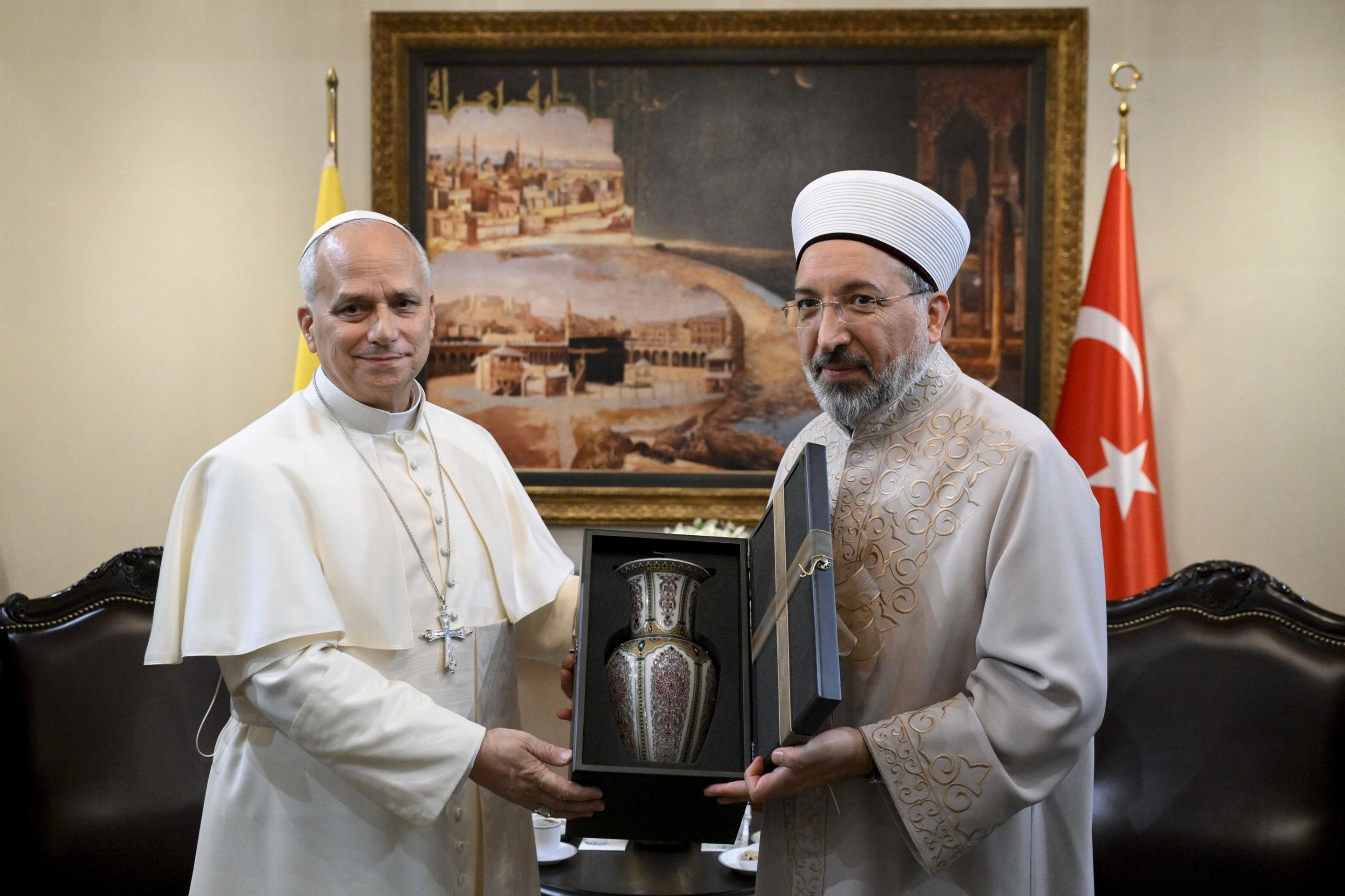 The head of Türkiye’s Directorate of Religious Affairs (Diyanet) Safi Arpaguş met with Pope Leo XIV on Wednesday following talks with President Recep Tayyip Erdoğan at the Presidential Complex in Ankara.