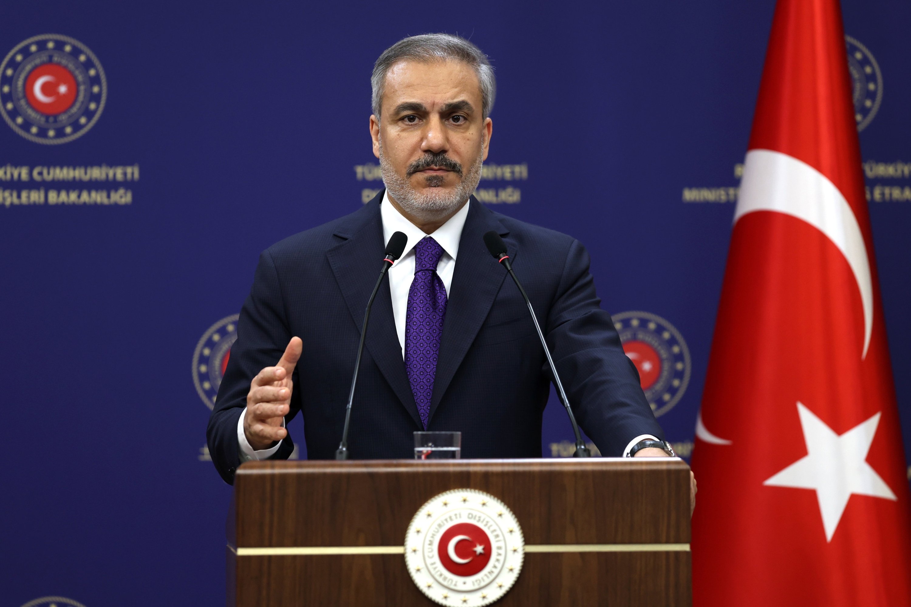 Turkish Foreign Minister Hakan Fidan speaks during a press conference with his Norwegian counterpart in Ankara, Türkiye, April 24, 2025. (EPA Photo)