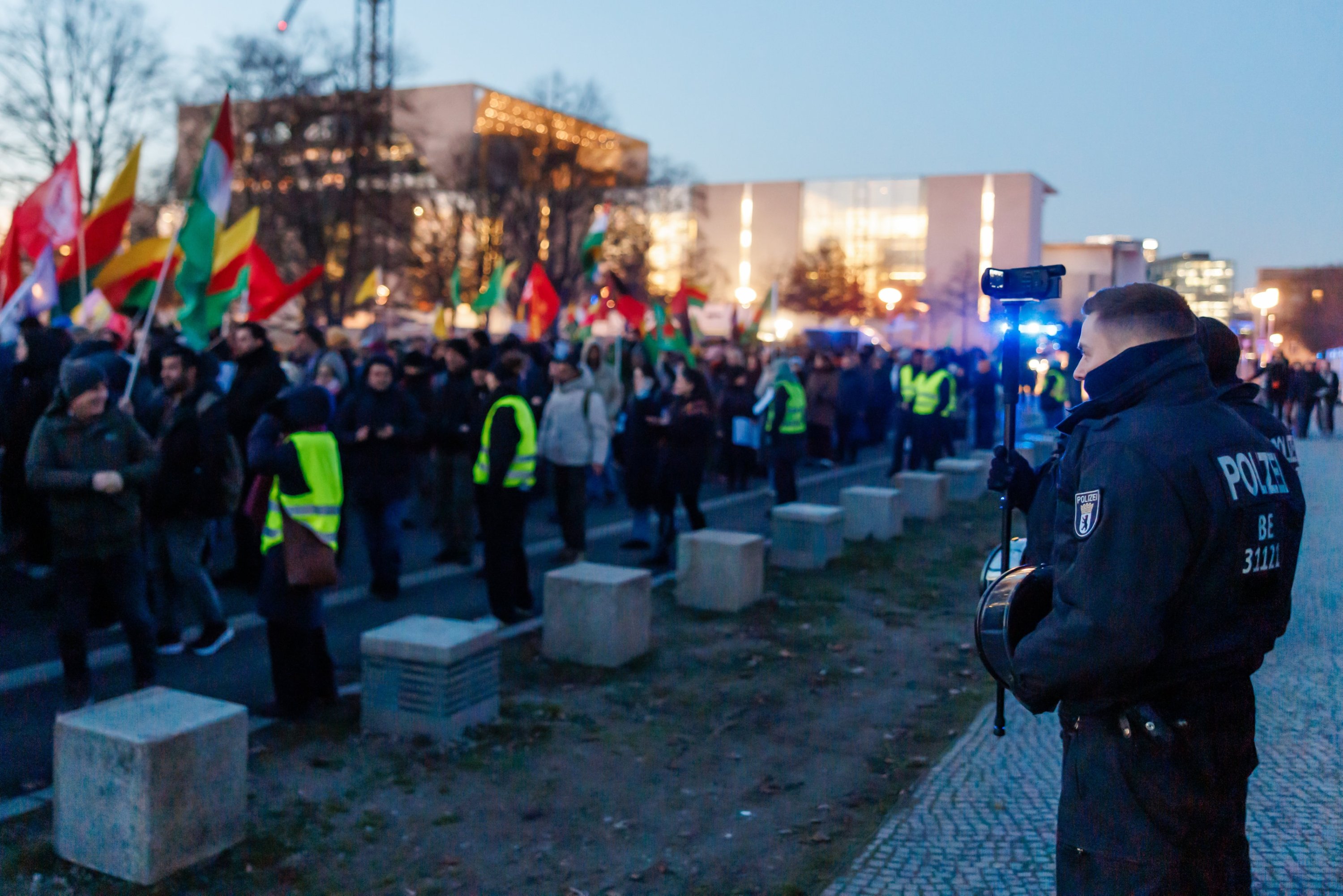 Earlier on Thursday in Hamburg, pro-YPG supporters blocked railway tracks at the main train station, disrupting long-distance and regional train services. During demonstrations in the city center, tensions frequently arose between protesters and police as demonstrators attempted to display YPG flags. Police deployed a large contingent and accompanied the demonstration with water cannons and riot control vehicles.