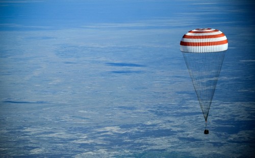 The Soyuz capsule with astronauts from Canada, Russia and the United States landed in the steppes of Kazakhstan at 8:47 a.m. (0247GMT), less than a minute ahead of the scheduled time, on Tuesday after a 3 ½ hour flight from the orbiting lab.
