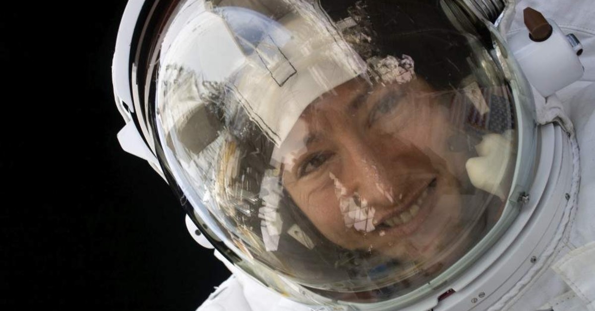 This handout photo released by NASA on Feb. 4, 2020, shows NASA astronaut Christina Koch during a spacewalk on Jan. 15, 2020. (NASA handout photo via AFP)