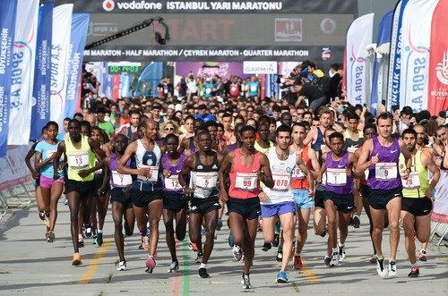 Thousands of athletes gathered in Turkey's biggest metropolis early Sunday to take part in the Vodafone 12th Istanbul Half Marathon, one of world's top marathon events and an IAAF (International Association of Athletics Federations) Gold Label Road Race.