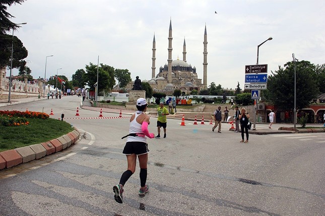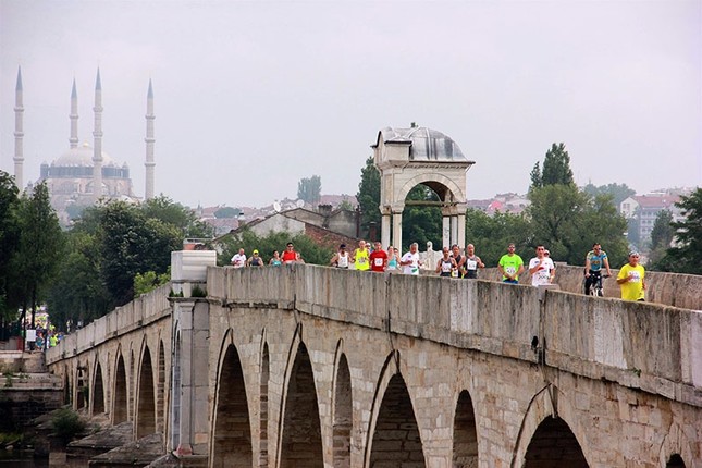 The race was endorsed by the Edirne Governorate and the Turkish Ministry of Youth and Sports. After a brief concert to warm up the runners, the marathon started in front of the Selimiye Mosque, the masterpiece of renowned 16th century architect Sinan, and landmark of the northwestern city of Edirne, which was a former Ottoman Empire capital. The athletes then crossed the Maritsa River into the Karaağaç district using another Ottoman-era landmark, the 18th century Mecidiye Bridge.