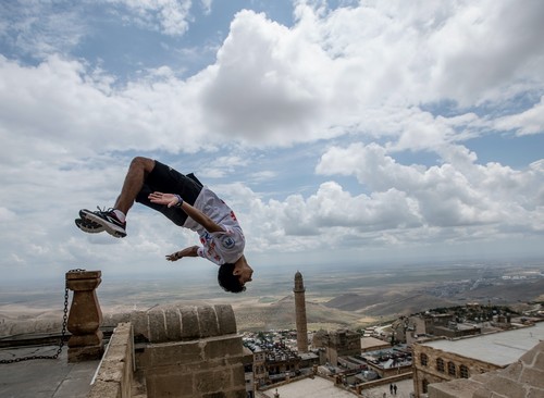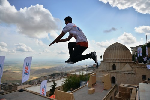Flipping and twisting their way around, athletes from around the world awed the audience with their feats in the World Freerunning Parkour Federation Parkour World Cup held over the weekend in the southeastern Turkish city of Mardin. With its memorable skyline, a citadel crowning narrow alleys dotted with stone houses and manors, Mardin has plenty of obstacles as well as easy routes for freerunning athletes.