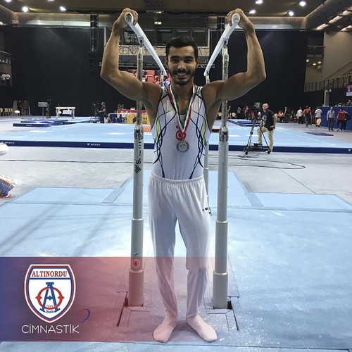 Ferhat Ar›can shows off his bronze medal in Artistic Gymnastics Individual Apparatus World Cup in Doha, Qatar, March 24, 2018.