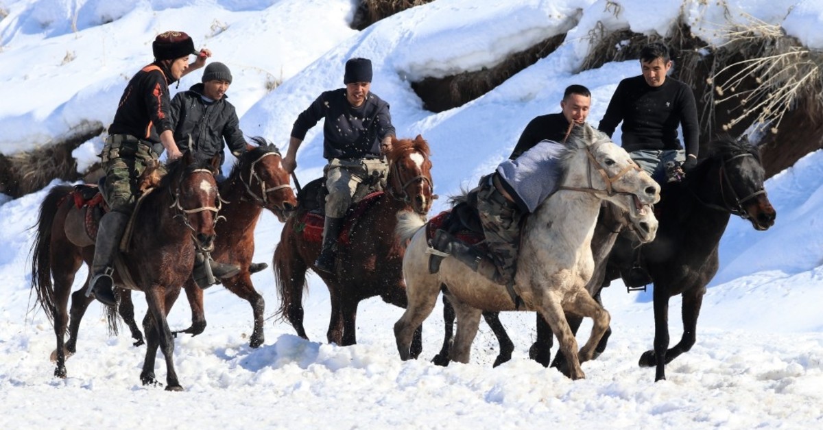 Galloping past snow-covered village squares, riders swoop in and lower themselves down to the "ulak," or goat's hide. Once they get hold of the hide, which has replaced the animal carcass their ancestors used, they take it to the goal to score. Kökbörü, as this ancient sport is called, has been revived by the Kyrgyz who settled in eastern Turkey decades ago. Today they practice the sport for the upcoming World Nomad Games.