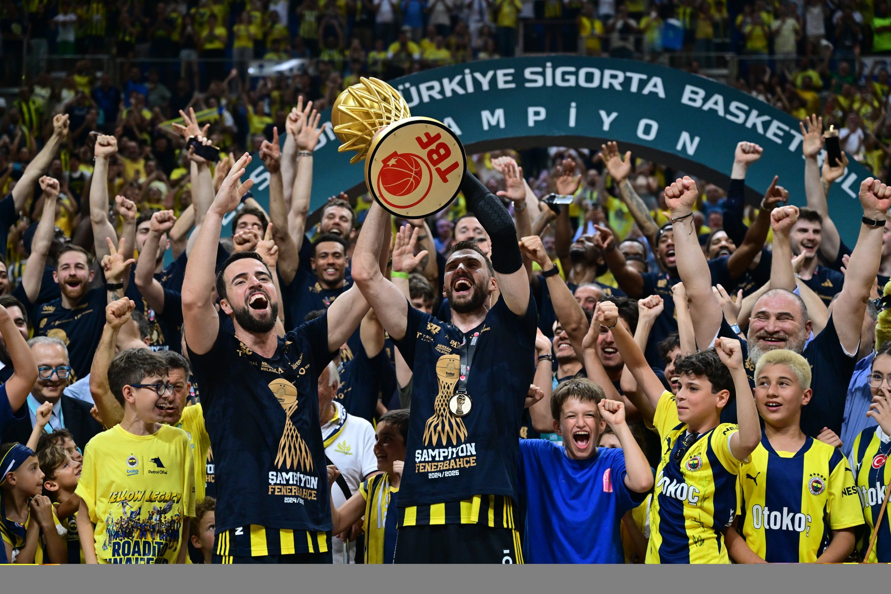 Then, Youth and Sports Minister Osman Aşkın Bak and TBF President Hidayet Türkoğlu presented the championship trophy to Fenerbahçe’s long-time captain Melih Mahmutoğlu.
