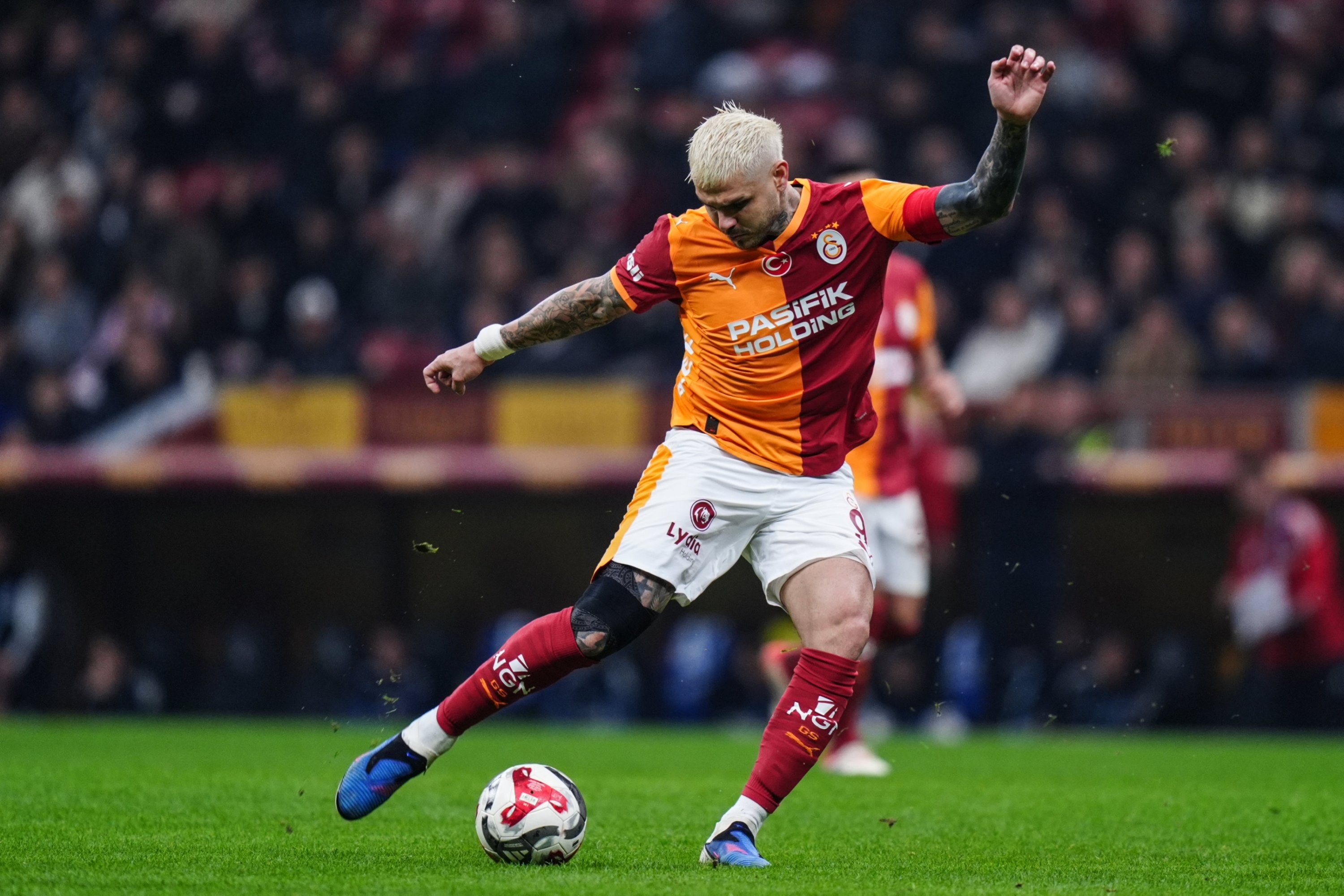 Galatasaray's Mauro Icardi shoots to score during the Süper Lig match against Kasımpaşa at RAMS Park, Istanbul, Türkiye, Dec. 20, 2025. (AA Photo)