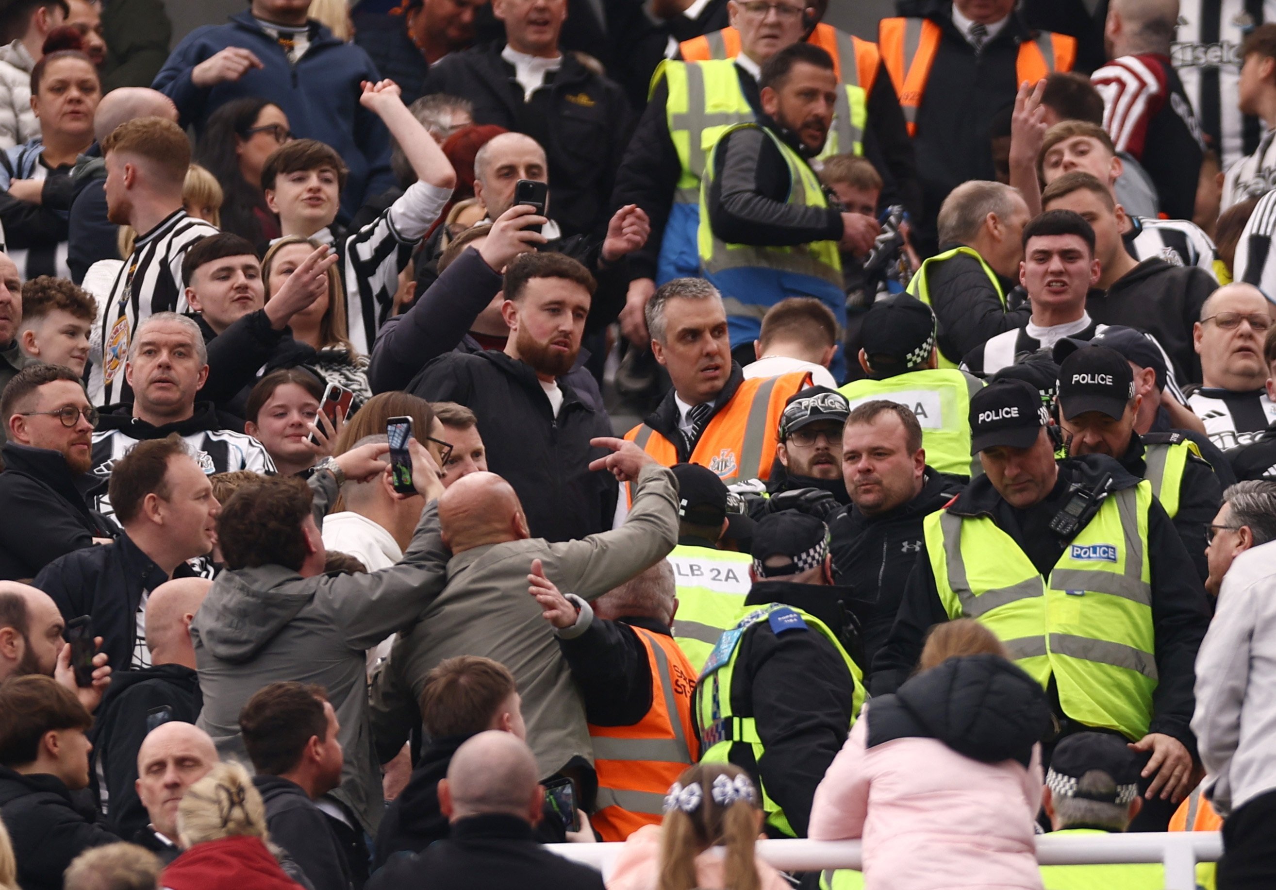 Newcastle United fans clash with police in the stands during the match against Sunderland at St. James' Park, Newcastle, U.K., March 22, 2026. (Reuters Photo)