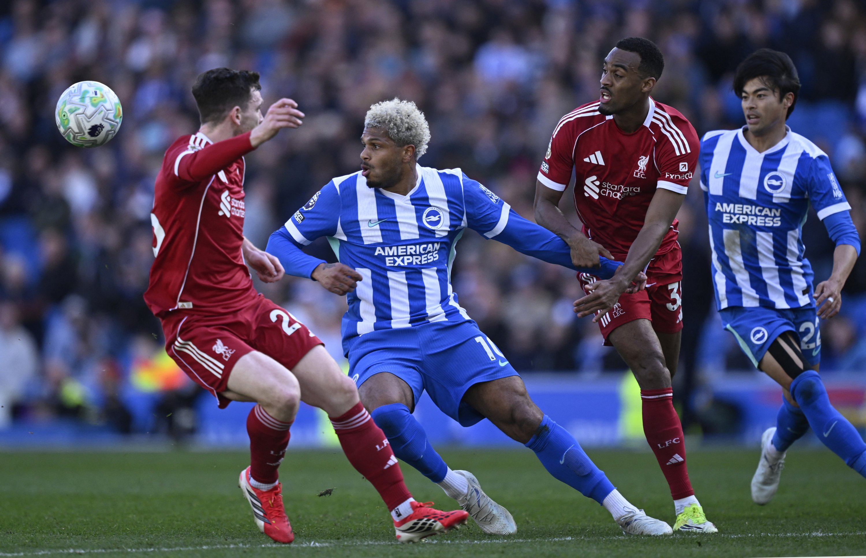 Champions Liverpool had slipped to a 2-1 defeat at Brighton in the early kick-off – their 10th loss of a dismal Premier League title defense.