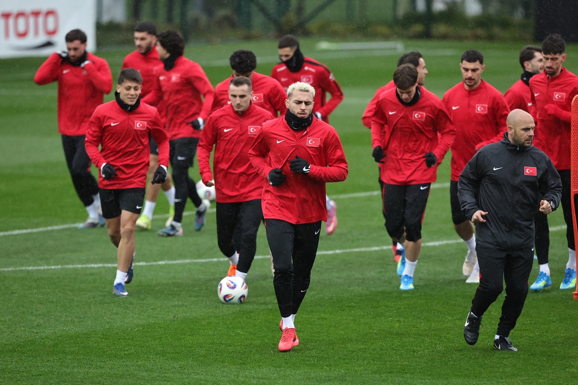 Türkiye national football team players train ahead of the 2026 FIFA World Cup qualifiers playoff match against Kosovo, Istanbul, Türkiye, March 29, 2026. (DHA Photo)