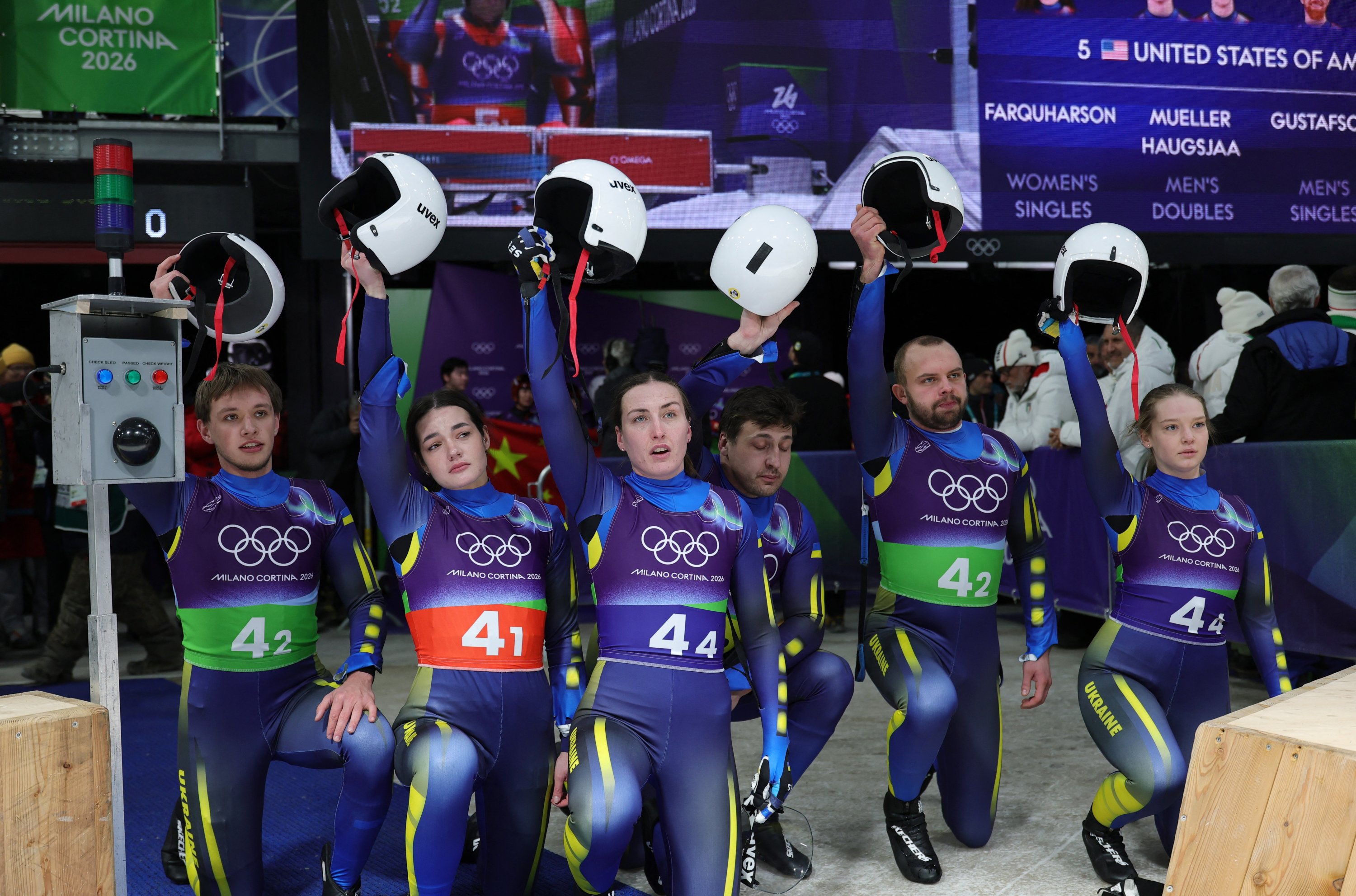 Ukrainian team members were seen in tears and hugging each other after the decision. Their teammates in the mixed relay luge competition later raised their helmets at the end of their run to honor Heraskevych before finishing sixth.