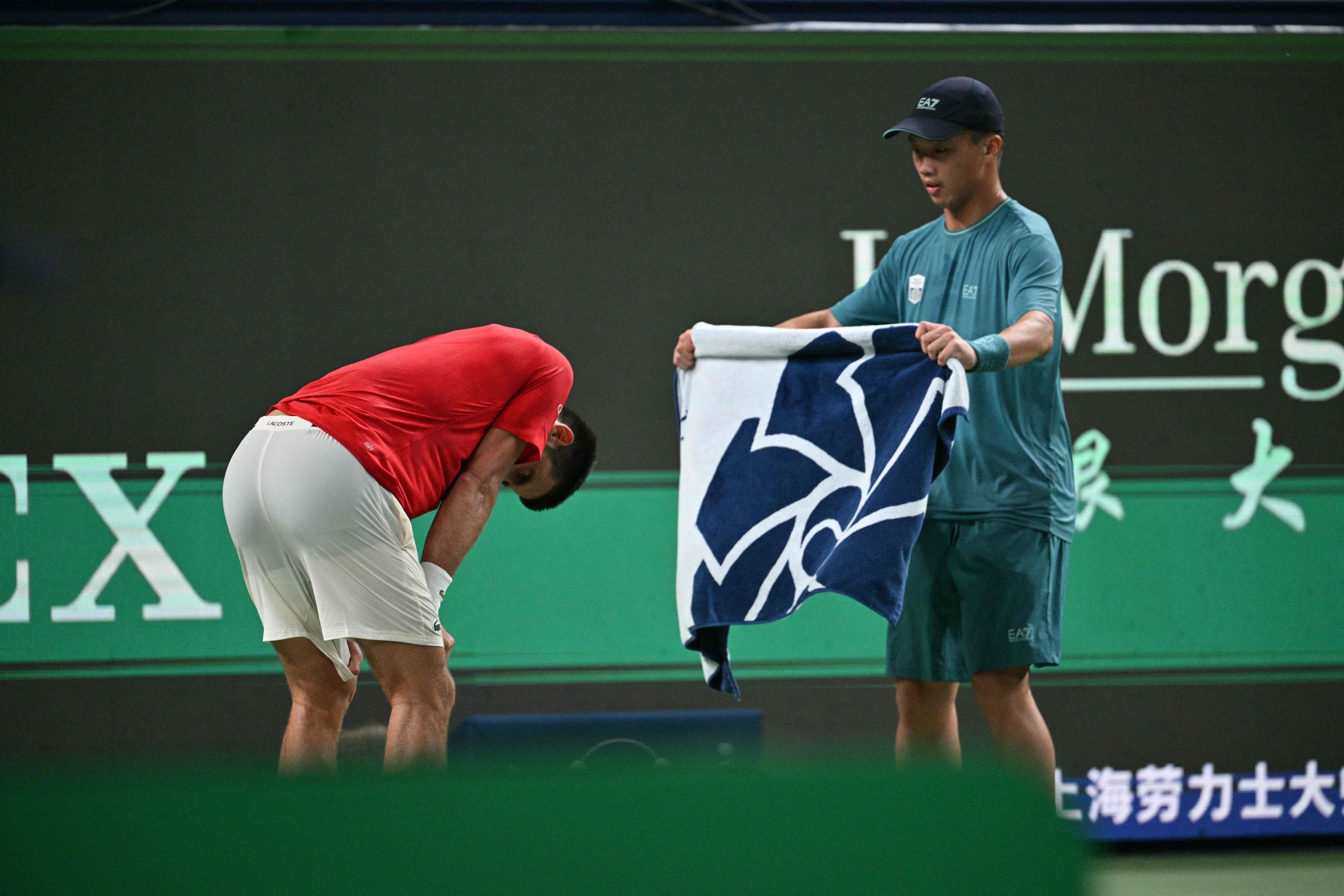 The 38-year-old bent over repeatedly between rallies against Spain’s Jaume Munar and even vomited on court, underscoring the punishing toll of the Shanghai sun.