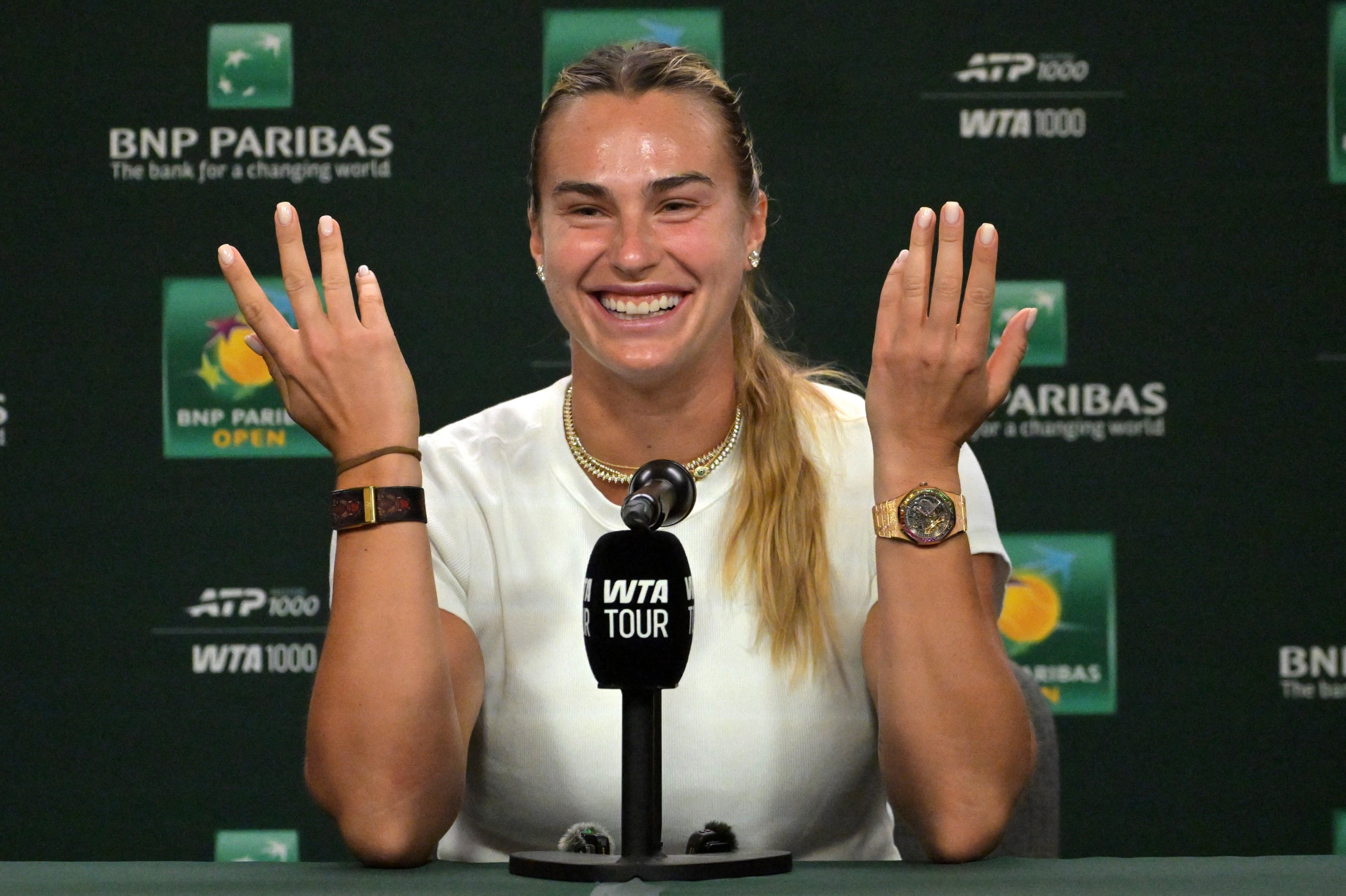 “Oh, that’s cool, let’s do that,” Sabalenka said Tuesday ahead of Indian Wells. “But I think after me there will be nothing to destroy. I would be there the whole day.”
