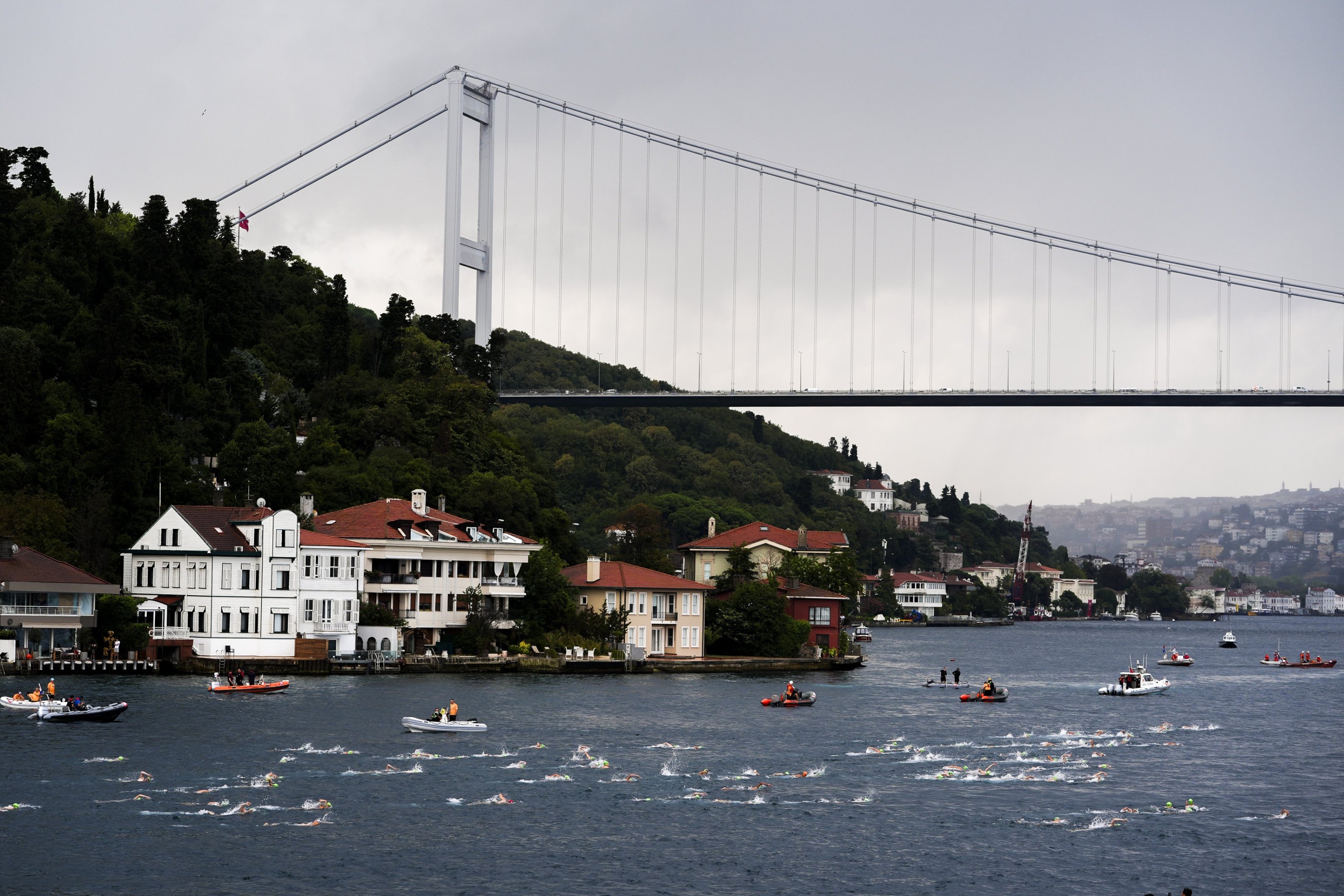 Participants were ferried by boat to the starting point in Kanlıca on the Asian side before diving into the Bosphorus.