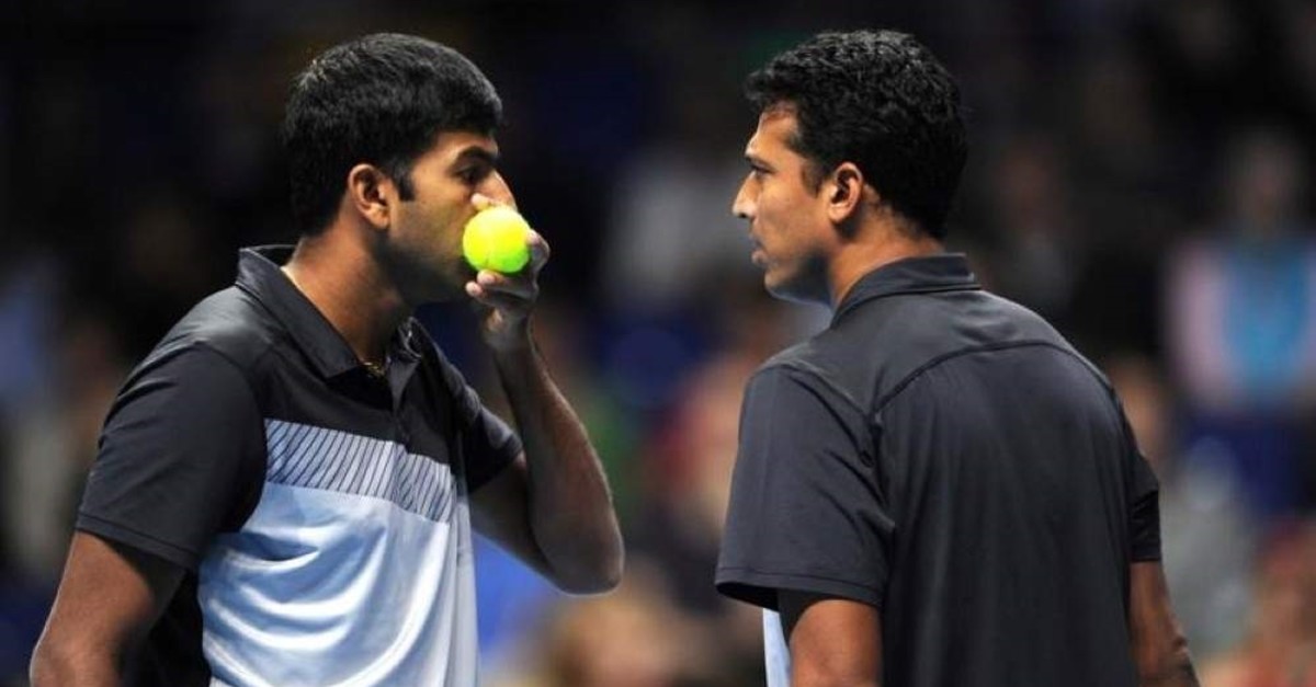 India's Bhupathi and Bopanna during their doubles match in London. (Reuters Photo)