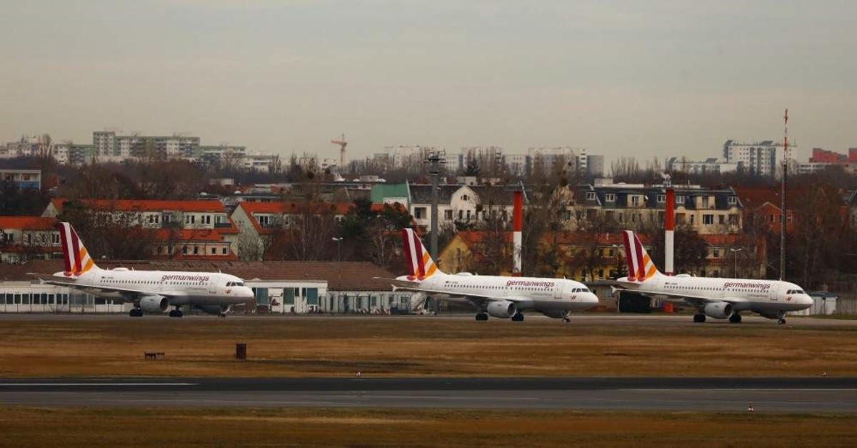 Airplanes wait on the tarmac during a strike of cabin crew employees of German airline Germanwings called by German cabin crew union UFO at Tegel Airport, Berlin, Germany, Dec. 30, 2019. (Reuters Photo)