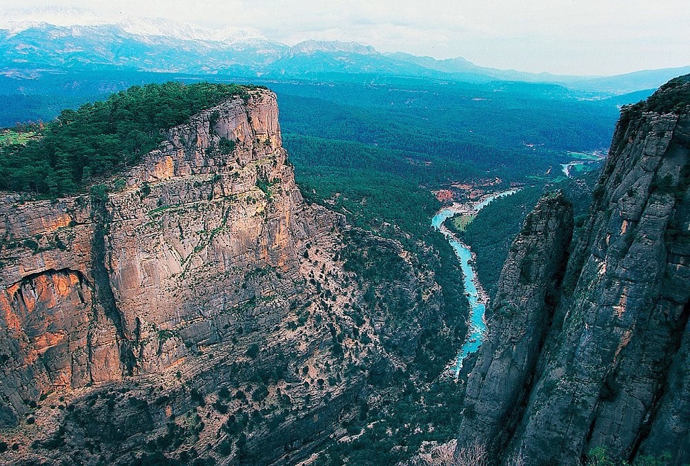 Nestled among cedar trees and the Köprü River, the canyon embraces adventurous spirits looking to explore an unsoiled place in Antalya, one of the top tourist destinations in Turkey. After passing through mountains where green streams flow and virgin forests grow, Köprülü Canyon shows all its beauty to visitors. Resembling another natural wonder of Turkey, the fairy chimneys, Köprülü Canyon one-ups this thanks to its river. When you arrive at the canyon to hike, you will be mesmerized by the spectacular view of the Taurus Mountain and the surrounding national park. Marked as the longest canyon in Turkey at 14 kilometers, Köprülü Canyon's wall are up to 100 meters high.