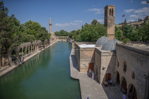 The Balıklıgöl Mosque complex and pool is perhaps the main reason travelers come to Şanlıurfa, or just Urfa to most. Perhaps five stone mosques of various size and function surround a park, cut with stone canals, which all eventually funnel underneath some arches into a rectangular pool in the center of an open-air palace. The carp live in the pool. They are sacred. On all sides, we were surrounded by the masterworks of Islamic architects. We bought carp snacks for a lira and sprinkled them into the pool to watch the carp struggle over each other to snack out. The fish struggled and flopped over each other in the pool.
