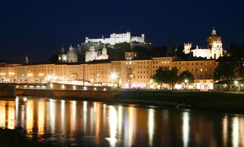 I spent four days in Salzburg, a Disney city of castles, ramparts and crenellations nestled in between pastoral green mountains, on top of which happy mooing cows and happy yodeling farmers in decorative leather shorts undoubtedly go about their business of making the entire town look as traditional as a cuckoo clock. It is quaint. It is picturesque. Salzburg's a dinky little town, only the fourth-largest city in the country after Vienna, Graz, and Linz, but is deservedly famous for its architecture and natural beauty. A stubby wall, dotted with stubby moss-covered towers, climbs up and down the slopes of the cliffs, defining the natural boundaries of the city. A huge white castle sits proudly on the highest hill. The wide Salzach River gushes through the valley just down below. (In my case, it had clearly been raining upriver just prior to my visit, because the river was swollen and brown.) Proud cathedrals sit on either side.