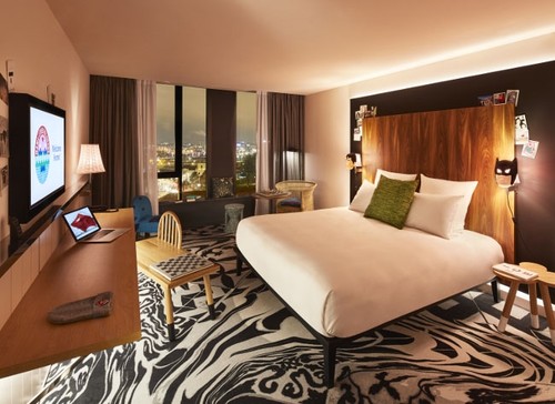 When it comes to decoration, the general outlook of the hotel embraces you from the moment you check in. The colorful furniture and carpets with vivid and modern patterns on them are all custom-made for the Mama Shelter, just like its other branches in Paris, Lyon, Bordeaux, Marseille, Los Angeles and Rio de Janeiro. All are decorated with the same motto: Modern, colorful and cozy like Mama's home. You have a wide variety of room options: medium, large, xxlarge. Especially if you come with your family and children, the "xxlarge" room will serve for your comfort with a large suite that can accommodate up to three people and extra bed options for children. The inner decoration of the rooms is quite minimalistic with no redundant and extravagant furniture inside, which is designed to relax the guests in an optimum way.