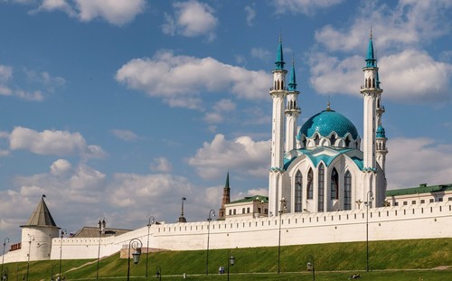Historic buildings around the river are as impressive as those in the center. One of the most important structures is the Kul Sharif Mosque in the Kremlin Palace.