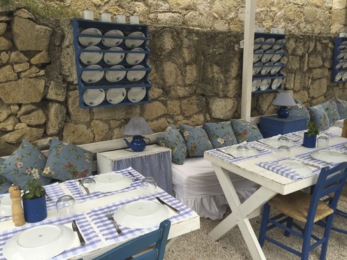 Asma Yaprağı restaurant in Alaçatı will take you back in time with its blue chairs and porcelain plates.