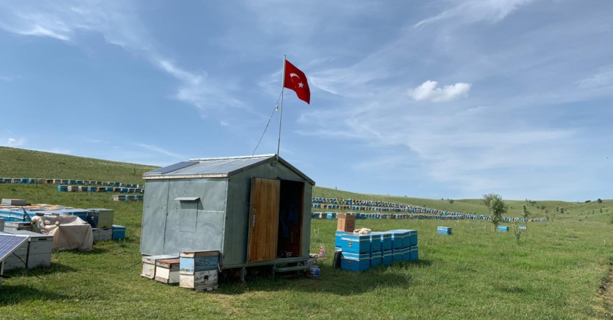 For the next four months, Sadık Özsoy, a second-generation migratory beekeeper, and his 400 hives will camp out in a secluded valley in the central Anatolian province of Çankırı. At around 40,000 bees per hive, he is the permanent guardian of 16 million tiny lives. During the months spent away from his native Muğla province in southern Turkey, Özsoy stays in a small, portable wooden hut next to the hives miles from the nearest town. He spends almost 24 hours a day near the bees. Wired to solar panels, his temporary 5-square-meter home does have a few modern conveniences: a TV, a tiny refrigerator and a gas stove. Surrounded by rolling hills and only the sound of millions of buzzing bees, he says it's a peaceful and secluded way to work.