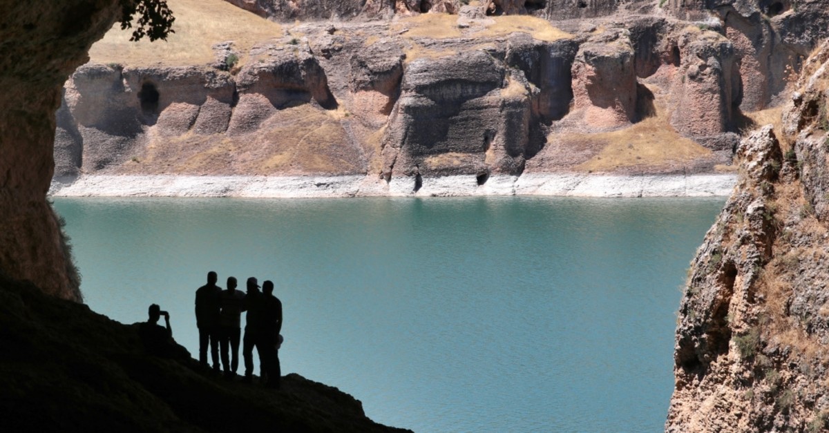 Nature lovers admire the view from one of the caves in Saklu0131kapu0131 Canyon in Elazu0131u011f.