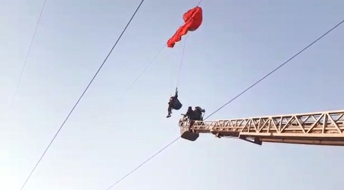 Kaya hung mid-air for two hours before a team of medical personnel and firefighters rescued her.