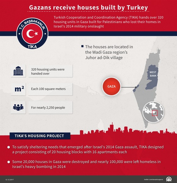 The Turkish Cooperation and Coordination Agency (TİKA) has handed over 320 housing units it recently built in the Gaza Strip to Palestine's Housing Ministry.