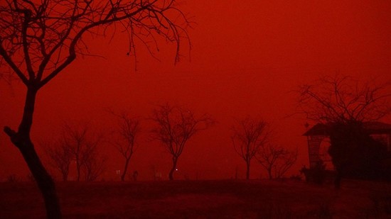 The sky turned red near the Syrian border and parents refrained from sending their children to school.