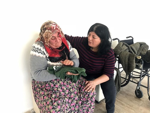 Gülsüm Kabadayı embraces a t-shirt of her adopted paralyzed Russian son who died after 10 years, Jan. 23, 2018. (AA Photo)