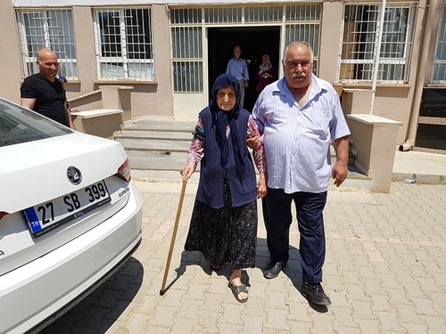 Her children brought her Atatürk Primary School in the Islahiye district to participate in the elections.
