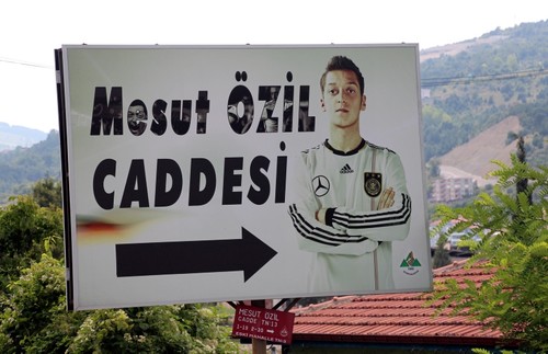 The photograph of Arsenal star and former Germany player Mesut Özil with President Recep Tayyip Erdoğan that started a wave of racist attacks against the football star a has found a special place in a northern Turkish district - on a roadside street sign.