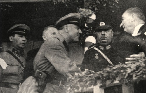 Soviet Marshall Kliment Voroshilov congratulates Atatürk on the 10th anniversary.